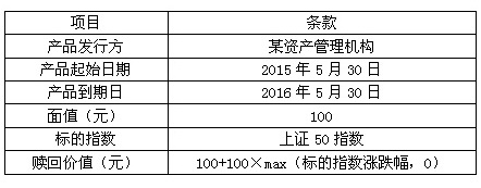 不定项选择题 某资产管理机构发行了一款保本结构化产品,产品的主要条款如下表所示。根据主要条款的具体内容,回答以下题。