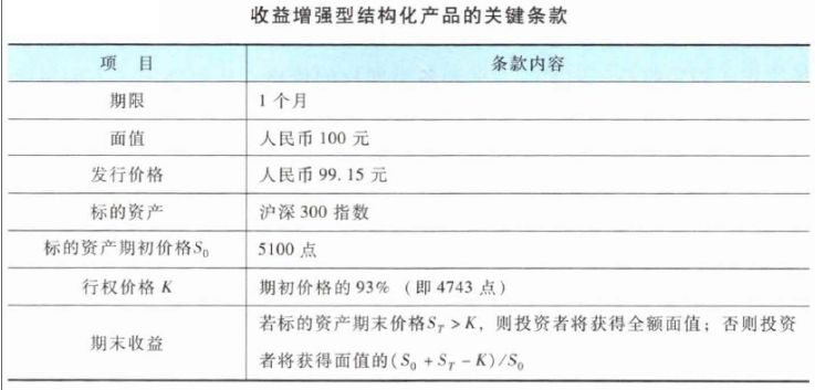 不定项选择题 某金融机构发行了一款收益增强型结构化产品,产品的关键条款如下表所示。根据关键条款的具体内容,回答以下题目。
