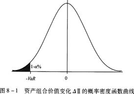 图8—1是资产组合价值变化△Π的概率密度函数曲线,其中阴影部分表示( )。