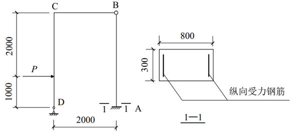 某构架计算简图如题图所示,安全等级为二级,其中竖杆AB为普通钢筋混凝土构件,对称配筋,混凝土强度等级C30,钢筋HRB4