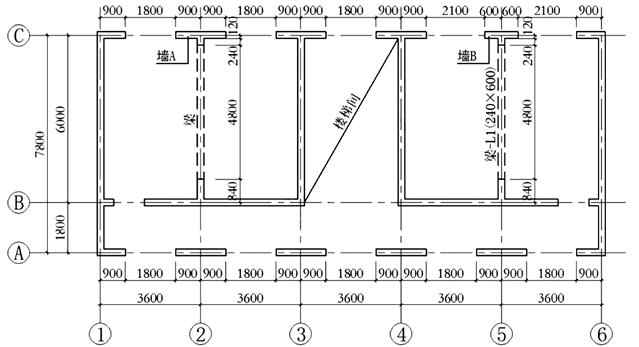 某新建二层砌体结构房屋如图所示,采用装配整件式钢筋混凝土楼盖,每层结构布置相同,墙厚均为240mm,层高均3.6m,墙体