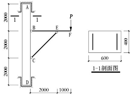 某管道支架的结构简图如图所示,安全等级为二级,其中构件AD为钢筋混凝土等截面构件,混凝土强度等级为C30(fc=14.3