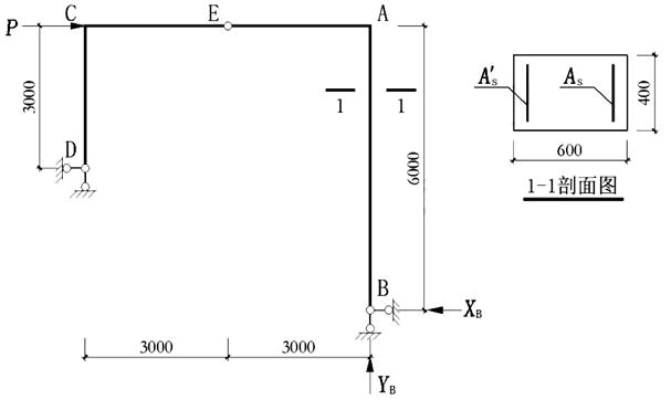 某钢筋混凝土构架,计算简图如下图所示,安全等级为二级,AB为等截面构件且采用通长对称配筋,混凝土强度等级为C40,钢筋采