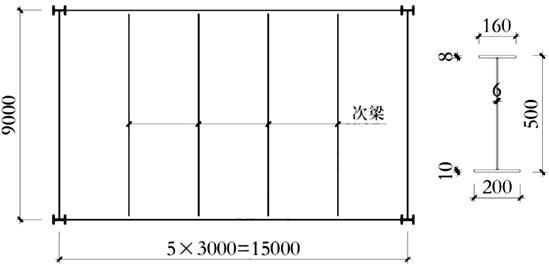 假定,夹层的局部布置如下图,混凝土楼板板厚120mm,采用钢筋桁架楼承板作为底模板,混凝土强度C30,次梁按钢—混凝土组合梁设计,其中钢梁采用H500×6×160×8/200×10,焊钉采用?19(fu=400MPa)。试问,单根次梁按完全抗剪连接组合计算的各跨焊钉总个数,与下列何项数值最为接近?( )