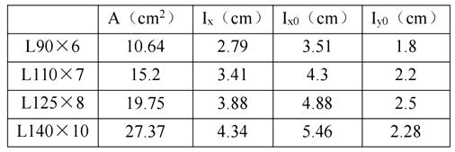 厂房柱间支撑采用单角钢,交叉点相互连接,角钢截面特征如下表所示,假定,柱间支撑承载力满足设计需求,试问,下柱纵向柱间支撑可采用的最小截面为下列何项?( )