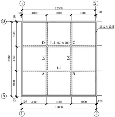 不定项选择题 某井字形普通钢筋混凝土屋盖结构,结构布置如图所示,L-1截面尺寸250mm×700mm,屋面板厚度120m