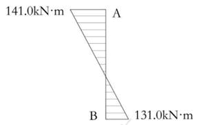 假设柱截面无削弱,在荷载基本组合下,AB段柱上端轴向压力设计值为NA=289.5kN,下端轴向压力设计值为NB=295.0kN。绕截面x轴的弯矩设计值如题图所示,忽略绕截面y轴的弯矩,柱截面无削弱。试问,AB段柱截面强度验算时,柱截面最大正应力计算值与下列何项数值最为接近?(  )
