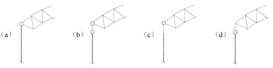 D 网壳与柱顶增加竖杆AB,竖杆上端刚接,下端铰接,如图(d)所示