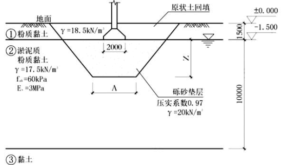 某砌体房屋,安全等级为二级,采用墙下钢筋混凝土条形基础,拟采用换填垫层法进行地基处理,因工期紧张,垫层换填完成,检验合格后即进行基础及上部结构施工。基础及其上土