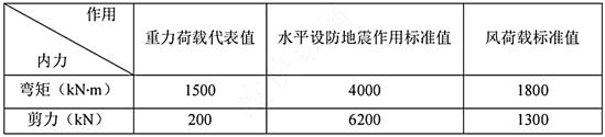 假定,进行抗震性能化设计,主体结构抗震性能目标为C级,底层墙肢2在重力荷载代表值、水平设防地震作用标准值、风荷载标准值下的内力如表28。试问,为满足设防地震下的结构抗震性能目标,底层墙肢2用于承载力验算的弯矩、剪力值与下列何项数值最为接近?( )