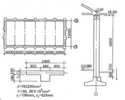 不定项选择题 某单跨仓库,如图所示。跨度15m,开间6m,共6个开间,属刚弹性方案。窗高3.6m,窗间墙宽2.4m,壁柱