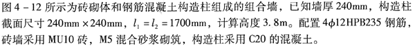 混凝土小型空心砌块砌体墙长1.6m,厚度为190mm,其上的永久荷载作用的正压力N=135kN,水平推力Y=25kN,永久荷载起控制作用,砌块墙采用MU10砌块