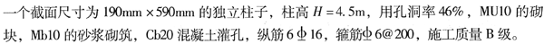 混凝土小型空心砌块砌体墙长1.6m,厚度为190mm,其上的永久荷载作用的正压力N=135kN,水平推力Y=25kN,永久荷载起控制作用,砌块墙采用MU10砌块