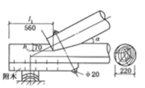 不定项选择题 图所示某临时性屋架端节点的单齿连接,齿深范围内的弓形垂直面积为10400mm2。上下弦夹角26°34',已