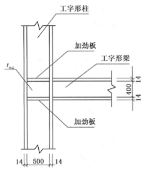 假定框架钢材采用Q345,fv=345N/mm2,某梁柱节点构造如图所示。试问,柱在节点域满足《高层建筑混凝土结构技术规范》(JGJ3-2002、J 186-2002)要求的腹板最小厚度twe(mm),与下列( )项数值最为接近。 提示:按《高层民用建筑钢结构技术规程》(JGJ99-98)计算。