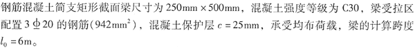 不定项选择题 某钢筋混凝土五跨连续梁,其计算简图及B支座配筋如图2-1所示:混凝土强度等级为C30,ft=1.43N/mm2,ftk=2.01N/mm2,Ec=