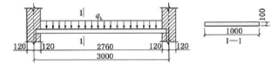 不定项选择题 某宿舍的内廓为现浇简支在砖墙上的钢筋混凝土平板(图),板厚 h=80mm,as=20mm,板上作用的均布活荷载标准值为qk=2kN/m2。水磨石地
