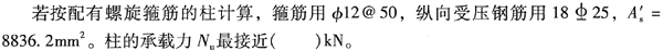 不定项选择题 圆形截面轴心受压柱,直径d=500mm,计算长度l0=5200mm。受轴心压力设计值N=4500kN,混凝土强度等级为C30,纵筋用HRB335级钢筋,箍筋用HPB235级钢筋。