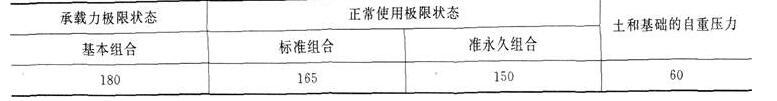 各种荷载条件下,建筑物上部结构的荷载传至基础底面的压力及土和基础的自重压力见下表,基础埋置深度为3m,基础底面以上土的平