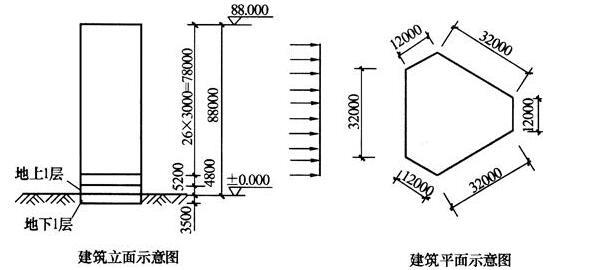 有密集建筑群的城市市区中的某建筑,地上28层,地下1层,为一般框架-核心筒钢筋混凝土高层建筑。抗震设防烈度为7度。该建筑质量沿高度比较均匀,平面为切角正三角形,如图所示。