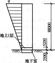 假定风荷载沿高度呈倒三角形分布,地面处为0,屋顶处风荷载设计值q=134.7kN/m,如下图所示。地下室混凝土剪变模量与
