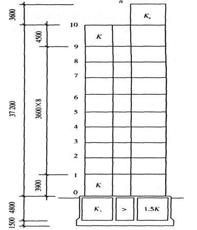 某10层现浇钢筋混凝土框架--剪力墙结构房屋,丙类建筑,剖面图如图22所示。其抗震设防烈度为8度,地震分组第二组,地震加