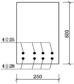 已知矩形截面梁b=250mm,h=600mm,采用C30级混凝土。 若受拉区配有425+428纵向受力钢筋(HRB400