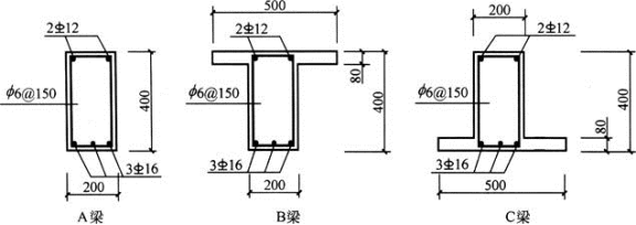 图为三根受弯构件梁的跨中截面配筋图,其混凝土强度等级、钢筋等级、纵向钢筋面积、箍筋根数、直径、间距均相同。下面给出四种关