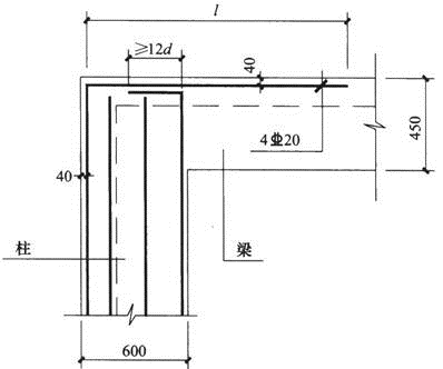 假定,该异形柱框架顶层端节点如图所示,计算时按刚接考虑,柱外侧按计算配置的受拉钢筋为4