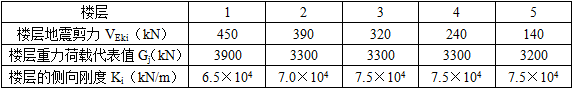假定,该结构的基本周期为0.8s,对应于水平地震作用标准值的各楼层地震剪力、重力荷载代表值和楼层的侧向刚度见表。试问,水平地震剪力不满足规范最小地震剪力要求的楼层为下列何项?( )