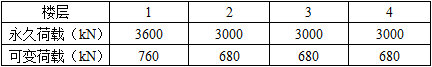 假定,采用底部剪力法计算时,集中于顶层的重力荷载代表值G5=3200kN,集中于其他各楼层的结构和构配件自重标准值(永久荷载)和按等效均布荷载计算的楼面活荷载标准值(可变荷载)见表。试问,结构等效总重力荷载Geq(kN),与下列何项数值最为接近?( )