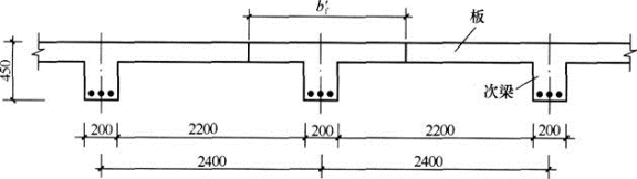 某钢筋混凝土现浇肋形楼盖的次梁,如图所示,次梁高度h=450mm,宽度b=200mm,次梁的计算跨度l0=6m,间距为2