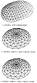 下列网壳结构如图(a)、(b)、(c)所示,针对其是否需要进行整体稳定性计算的判断,下列何项正确?( )
