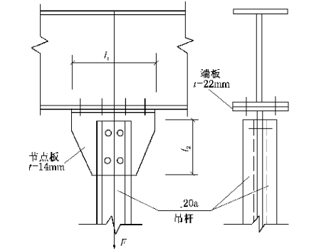图所示某节点连接构造,材料为Q235钢。在钢梁底面设有吊杆,承受拉力设计值850kN。吊杆通过T形连接件将荷载传给钢梁,连接件采用双排m^22螺栓与梁下翼缘连接。m^22螺栓的有效面积Ae=244.8mm^2。