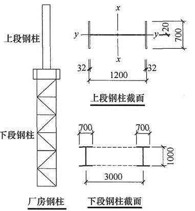 某轻屋盖单层钢结构多跨厂房,中列厂房柱采用单阶钢柱,钢材采用Q345钢。上段钢柱采用焊接工字形截面H1200×700×2