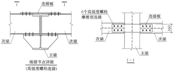 假定,悬挑次梁与主梁的焊接连接改为高强度螺栓摩擦型连接,次梁上翼缘与连接板每侧各采用6个高强度螺栓,其刚接节点如图所示。高强度螺栓的性能等级为10.9级,连接处构件接触面采用喷砂(丸)处理。试问,次梁上翼缘处连接所需高强度螺栓的最小规格应为下列何项?( )