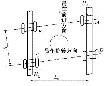 吊车轮水平摆动引起卡轨力示意图