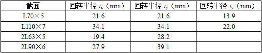 屋面支撑布置图各支撑截面特性如表: