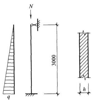 一地下室外墙,墙厚h,采用MU10烧结普通砖、M10水泥砂浆砌筑,砌体施工质量控制等级为B级。计算简图如图所示,侧向土压力设计值q=34kN/m^2。承载力验算时不考虑墙体自重,γ0=1.0。