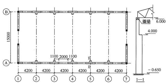 一单层单跨有吊车厂房,平面如图所示。采用轻钢屋盖,屋架下弦标高为6.0m。变截面砖柱采用MU10级烧结普通砖、M10级混