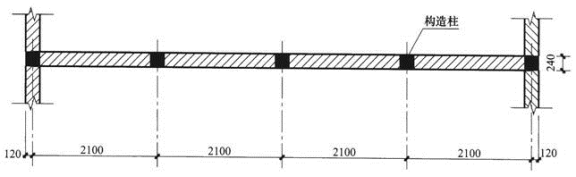 某砖砌体和钢筋混凝土构造柱组合墙,如图所示,结构安全等级二级。构造柱截面均为240mm×240mm,混凝土采用C20(f