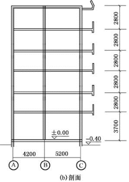 某六层混凝土砌块结构住宅,屋面及楼板均采用现浇混凝土,横墙、纵墙承重,标准层层高为2.8m,所有承重墙均为190mm厚砌块。全部墙体采用MU10砌块、MU10砂浆,芯柱Cb20混凝土,设防烈度7度。图所示为单元的平、剖面图。