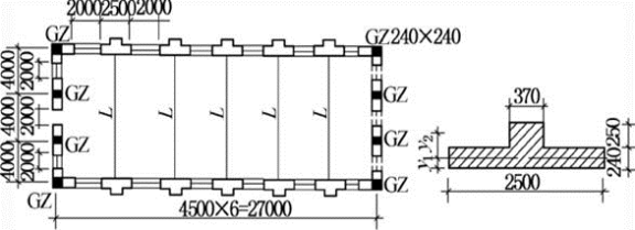 图 某单层单跨无吊车厂房平面、壁柱墙截面示意