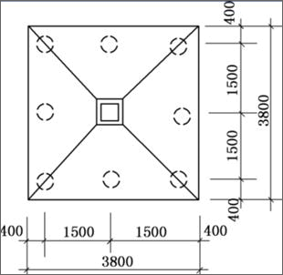 如图所示,某丙级建筑物有一柱下桩基础,采用8根沉管灌注桩,已知桩身设计直径d=377mm,桩身有效计算长度l=13.6m