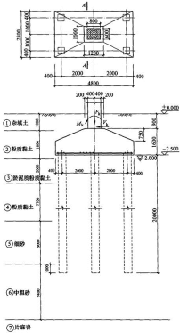 某地基基础设计等级为乙级的柱下桩基础,承台下布置有5根边长为400mm的C60钢筋混凝土预制方桩。框架柱截面尺寸为600