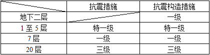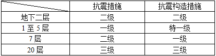 某现浇钢筋混凝土大底盘双塔结构,地上37层,地下2层,如图所示。大底盘5层均为商场(乙类建筑),高度23.5m,塔楼为部