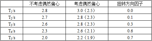 某平面不规则的现浇钢筋混凝土高层结构,整体分析时采用刚性楼盖假定计算,结构自振周期见表。试问,对结构扭转不规则判断时,扭