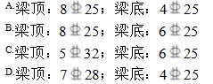 25。梁端截面A处顶、底纵筋(锚入柱内)有以下4组配置。试问,下列哪组配置满足规范、规程的设计要求且最为合理?( )