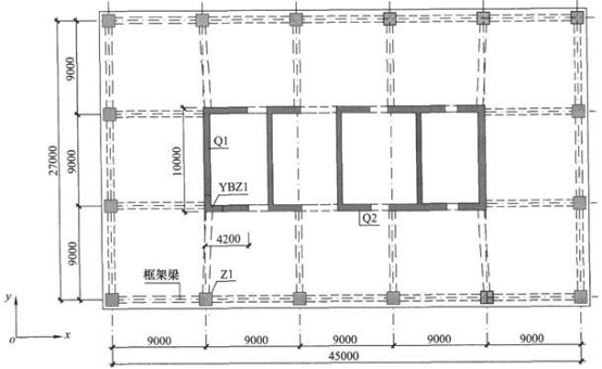 某地上38层的现浇钢筋混凝土框架-核心筒办公楼,如图所示,房屋高度为155.4m,该建筑地上第1层至地上第4层的层高均为