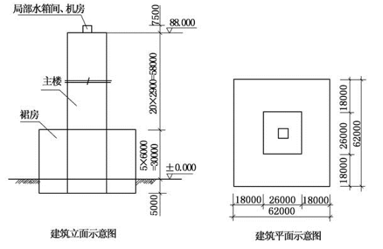 某大底盘单塔楼高层建筑,主楼为钢筋混凝土框架-核心筒,与主楼连为整体的裙房为混凝土框架结构,如图所示;本地区抗震设防烈度为7度,建筑场地为Ⅱ类。